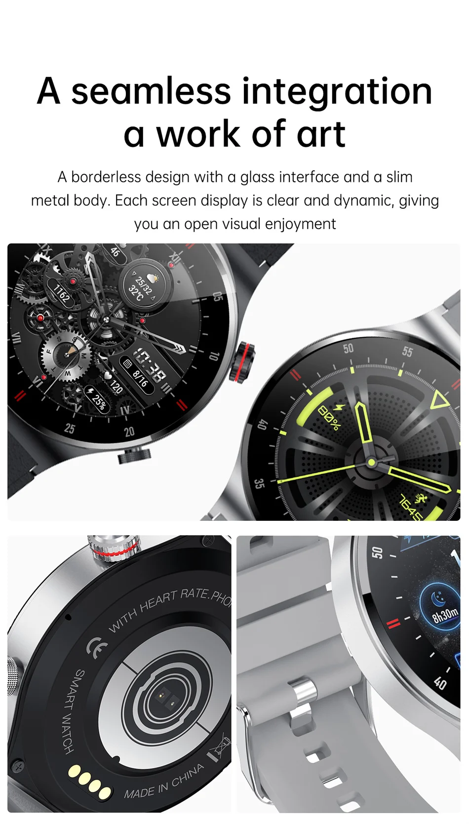 Affichage Hd, résolution jusqu’à 240*240 pixels, mesure de la température, téléphone Bluetooth, musique Bluetooth, assistant vocal AI,