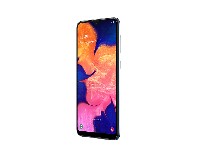 Avec seulement 7,8 mm d’épaisseur, le Galaxy A10 tient parfaitement dans la main. Il présente une finition brillante et originale en plastique, disponible en noir, vert, bleu ou rouge. Pour le déverrouiller, placez simplement votre doigt sur capteur arrière.